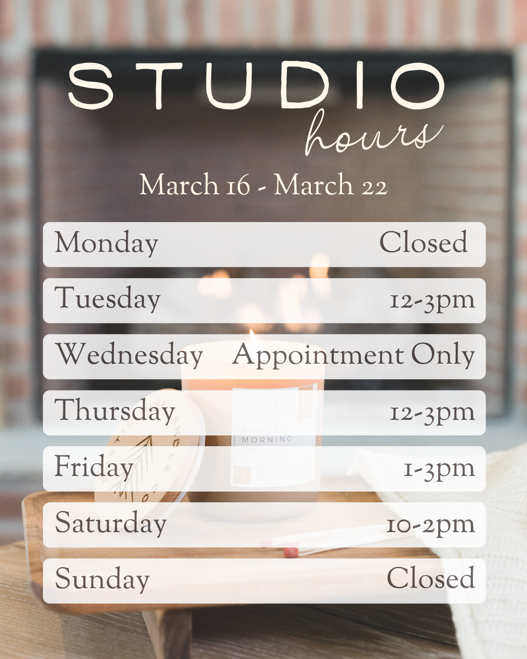 The studio is open this week! Stop in, browse the shelves, drop off refills, and spend a little time with us in the studio.