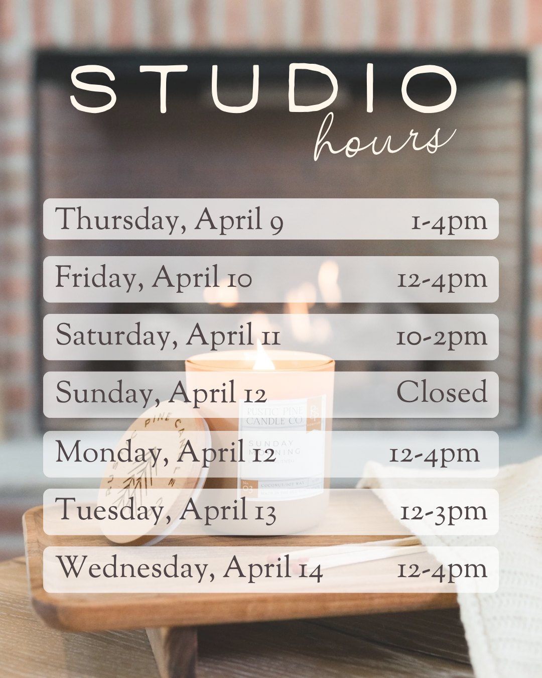 Our current studio will be closing temporarily on April 15 as we transition into our new storefront space. This next season of growth means more room to create, gather, and bring something even more special to our community!